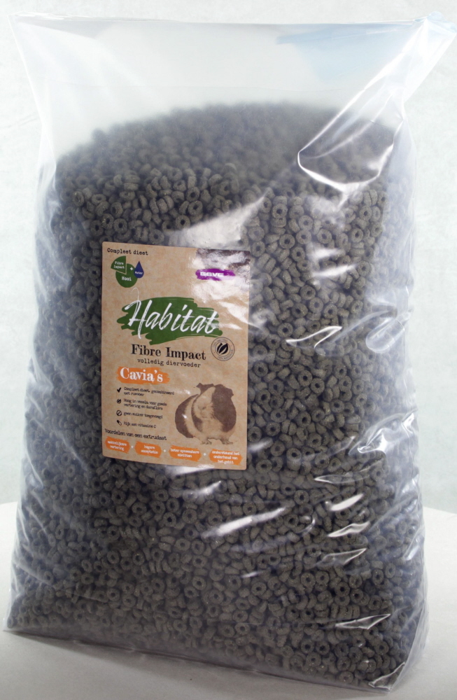 De darmflora van een cavia bestaat uit maagsappen, enzymen, bacteriën en schimmels, deze zijn met name goed in het verteren van vezels, Habitat Fibre Impact sluit hier naadloos op aan om uw cavia sterk en gezond te houden.