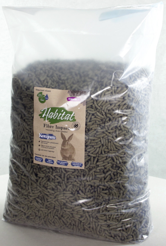 Plantaardige vezels uit planten, grassen en kruiden vormen in de natuur het dieet voor een gezond konijn. Een mix van deze producten hebben wij als ingrediƫnten gekozen voor Habitat Fibre Impact. Het verteringsstelsel van konijnen is hier volledig op ingericht waardoor dit een optimale vertering geeft en zorgt voor een uitstekende opname van bouwstoffen en energie uit deze vezels.
