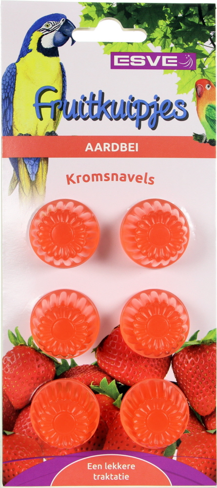 Een lekkere traktatie voor uw kromsnavel. ESVE Fruitkuipjes kunnen uit de hand gegeven worden, uit de poot gegeten worden en in een houder aangeboden worden.