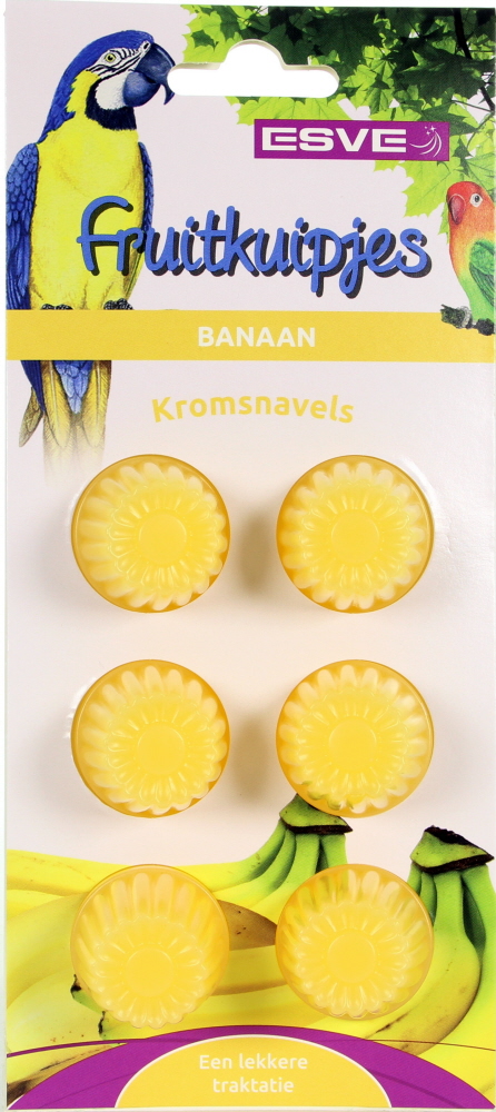 Een lekkere traktatie voor uw kromsnavel. ESVE Fruitkuipjes kunnen uit de hand gegeven worden, uit de poot gegeten worden en in een houder aangeboden worden.