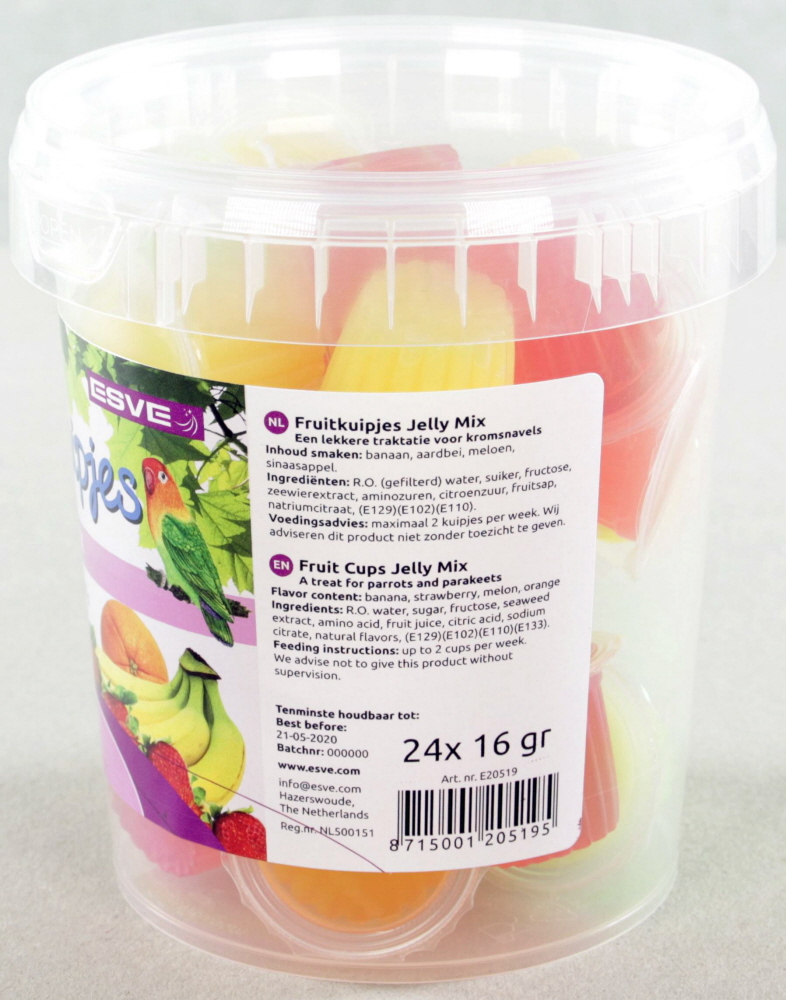 Een lekkere traktatie voor uw kromsnavel. ESVE Fruitkuipjes kunnen uit de hand gegeven worden, uit de poot gegeten worden en in een houder aangeboden worden.