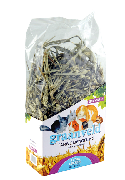 ESVE Graanveld Tarwemengeling komt direct van het land en bevat een hoog percentage natuurlijke vezels. Dit zorgt voor een goede spijsvertering bij knaagdieren en konijnen. Hoe beter de spijsvertering, des te meer het dit de gezondheid van uw huisdier bevordert.