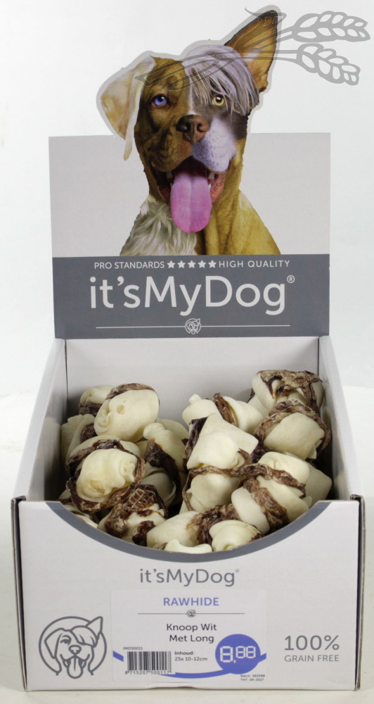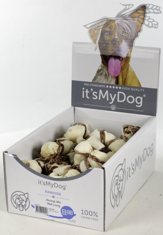 it’s My Dog Rawhide Knoop Wit Met Long per showdoos van 25 stuks
