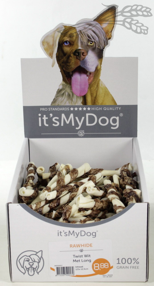it’s My Dog Rawhide Twist Wit Met Long per showdoos van 125 stuks