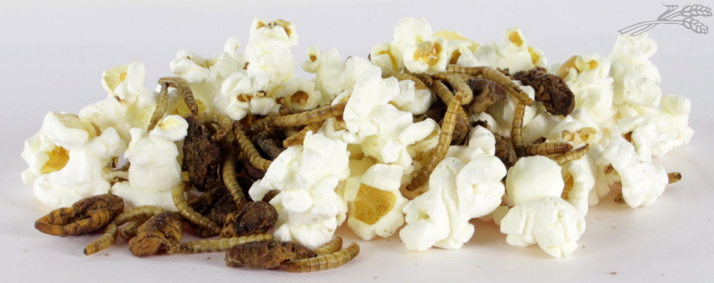 Popcorn (maïs) 57%. meelwormen 21% en zijderupsen 21%.