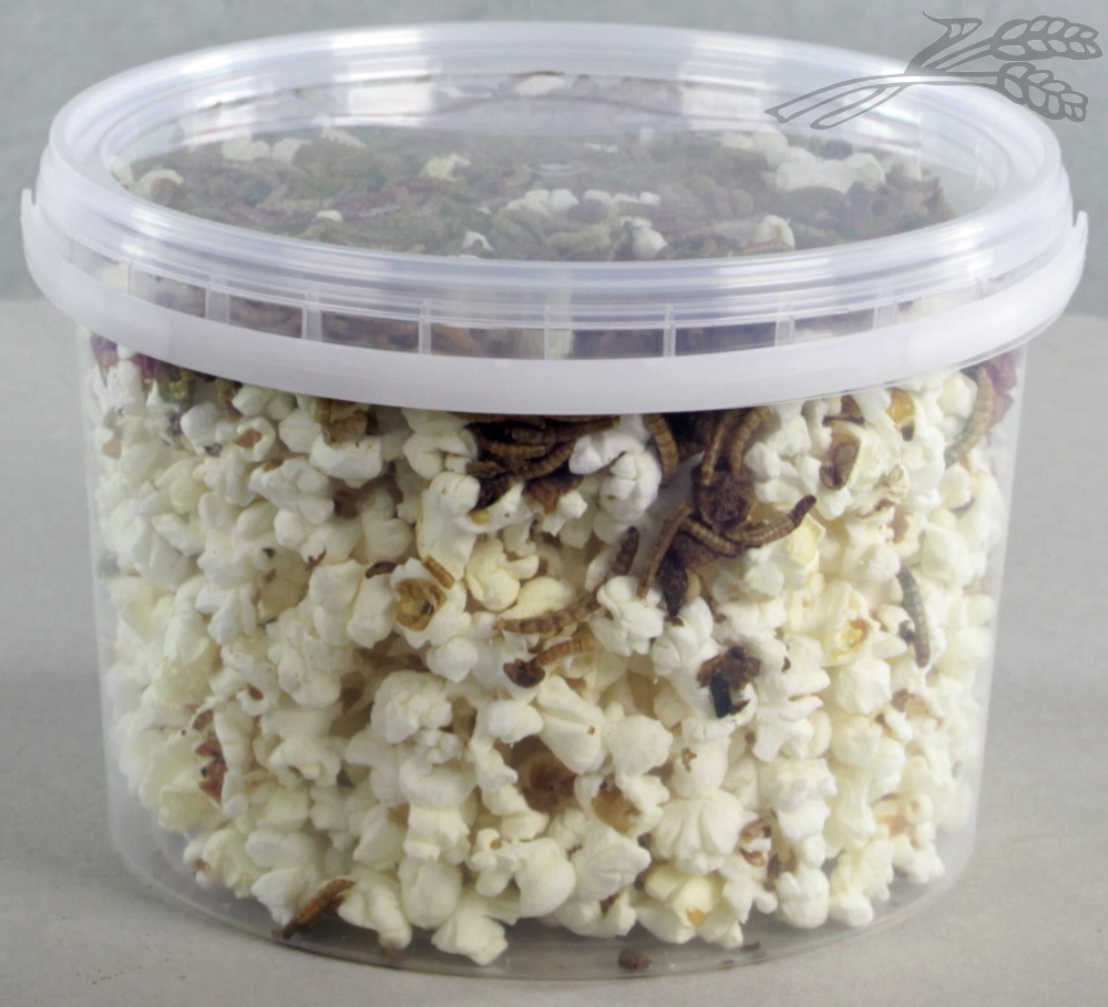 Een lekkere en gezonde snack in combinatie met meelwormen en zijderupsen. Popcorn kan wat vaker als traktatie gegeven worden, doordat het maar weinig calorieën bevat. Voedingsadvies: voer met mate. Strooi de lekkernijen verdeelt over het verblijft om het natuurlijke scharrel gedrag van de kip te stimuleren.