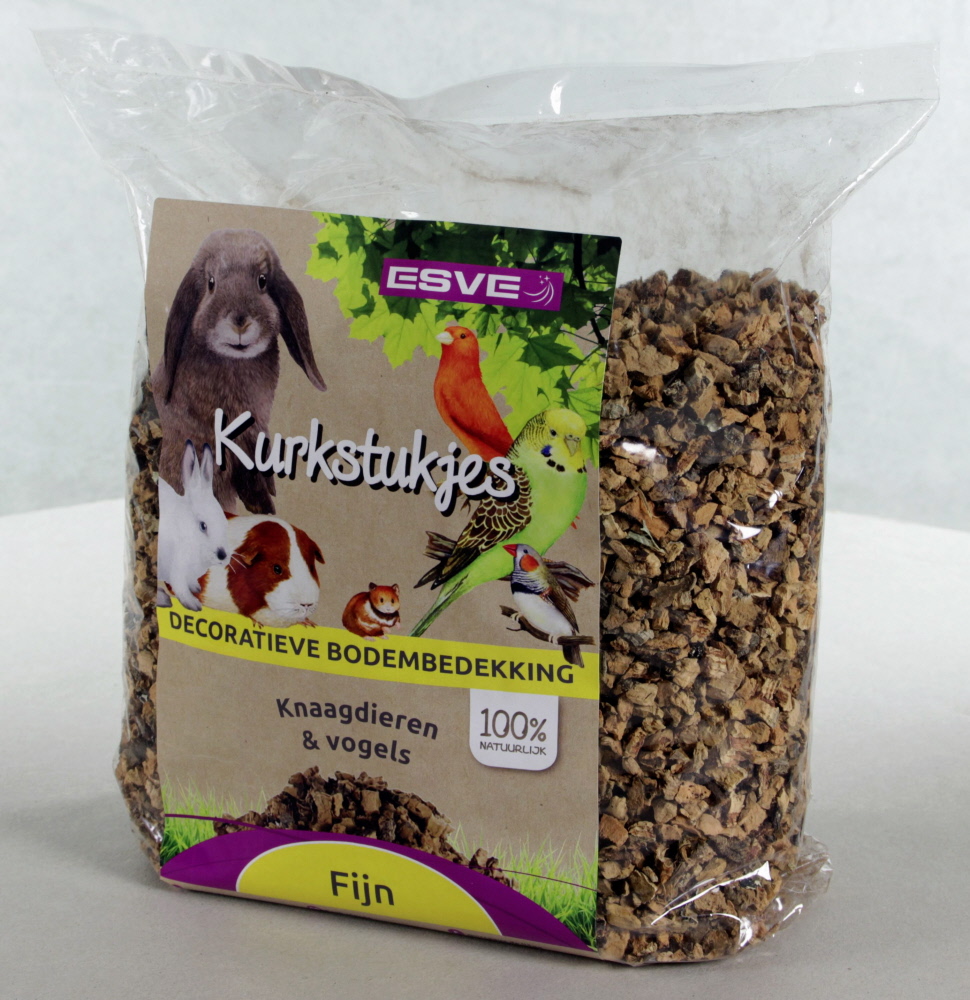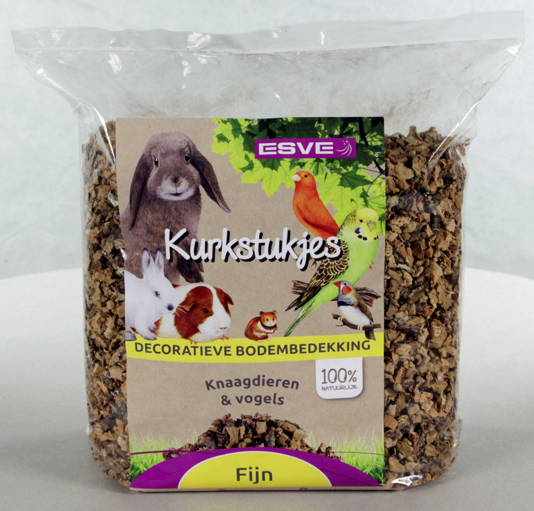 ESVE Kurkplaat zijn bedoeld als natuurlijke toplaag over absorberende bodembedekking. Kurk is van nature een vochtafstotend materiaal. Kurk kan gebruikt worden als decoratieve en natuurlijk gedrag bevorderende bodemverrijking voor knaagdieren en vogels. Kurk is bedoeld om uw dier uit te dagen tot natuurlijk gedrag, daarom is het wenselijk om gebruik te maken van verschillende bodembedekkingen in 1 verblijf. Gebruik voor de plek waar uw dier zijn ontlasting doet een absorberende bodembedekking. Zo gaan de kurkstukjes nog langer mee.