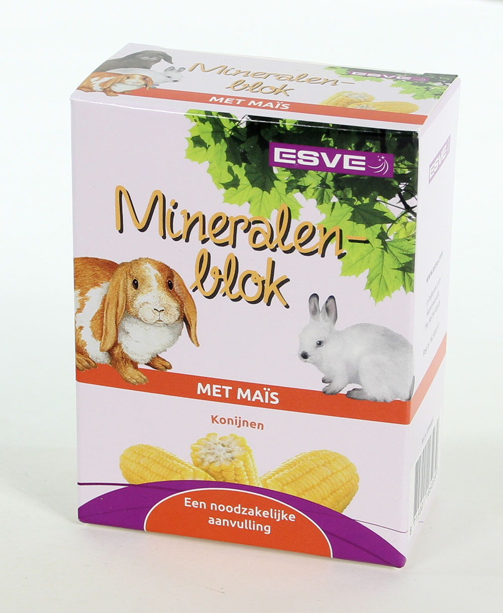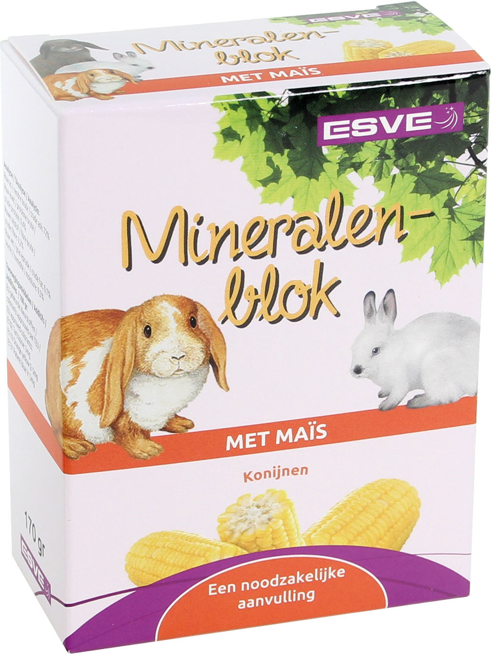ESVE mineralenblok konijnen speciaal voor konijnen. Deze zuiver natuurlijke lekkernij draagt bij tot een sterk bottengestel, een mooi gezonde vacht en bevredigt de natuurlijke knaagbehoefte. Om konijnen gezond te houden mag Mineralenblok dan ook niet ontbreken.