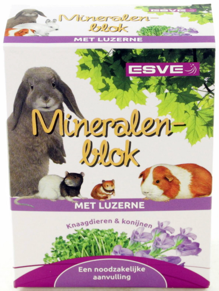 ESVE mineralenblok met kruiden is een aanvullend mineraalvoeder, speciaal voor konijnen en knaagdieren. Deze zuiver natuurlijke lekkernij draagt bij tot een sterk bottengestel, een mooi gezonde vacht en bevredigt de natuurlijke knaagbehoefte. Om konijnen en knaagdieren gezond te houden mag ESVE Mineralenblok met kruiden dan ook niet ontbreken.