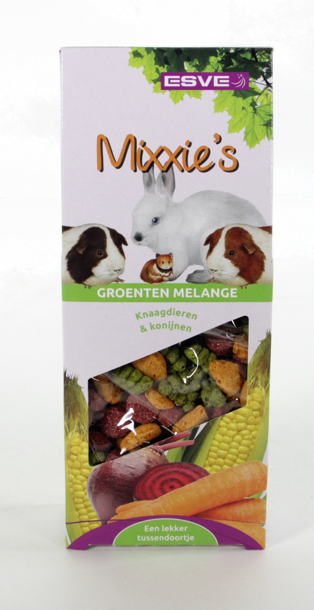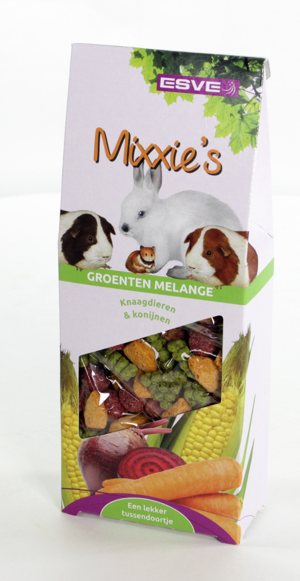 Dé beloning voor elke dag. MIX-XIE’s zijn heerlijke en gezonde tussendoortjes met belangrijke voedingsstoffen, die uw knaagdier verwennen. Bevordert tevens de spijsvertering en knaagbehoefte. Aanvullend diervoeder voor hobby konijnen en knaagdieren.