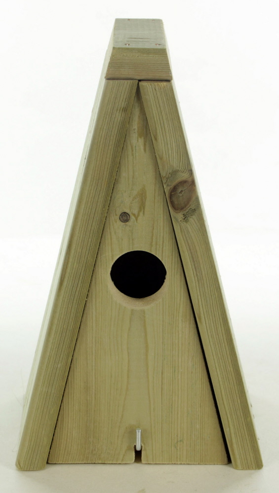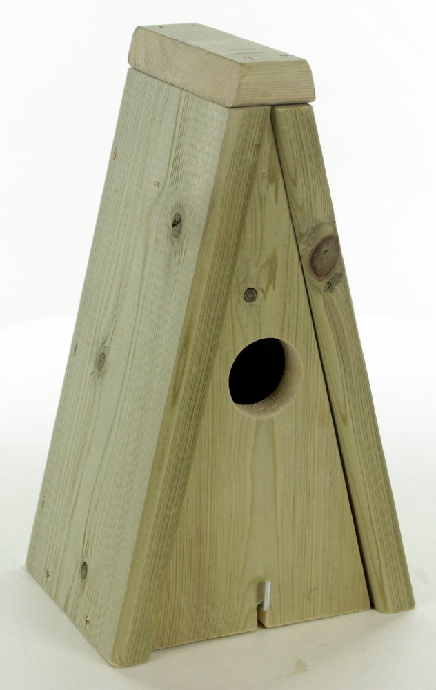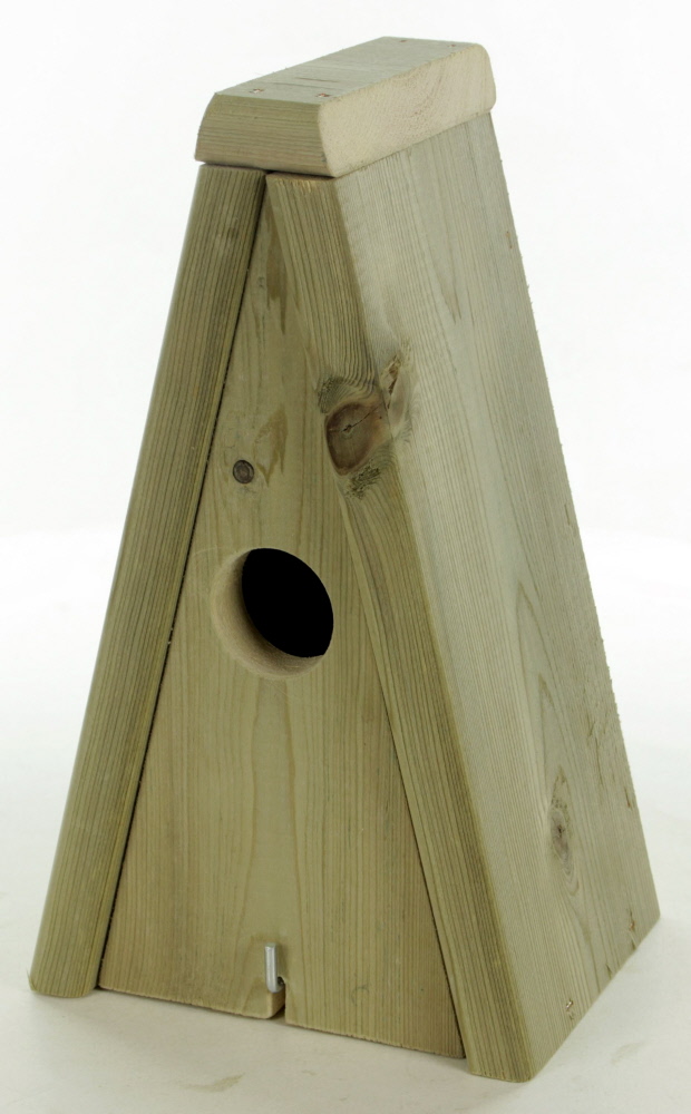 Stevige houten nestkast. Makkelijk open te maken om het kastje klaar te maken voor het volgende seizoen.