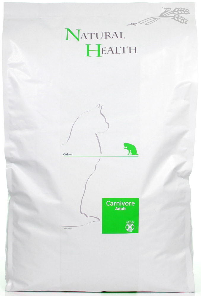 Natural Health Carnivore heeft een laag percentage zetmeel, een hoog percentage eiwit en is vrij van granen.