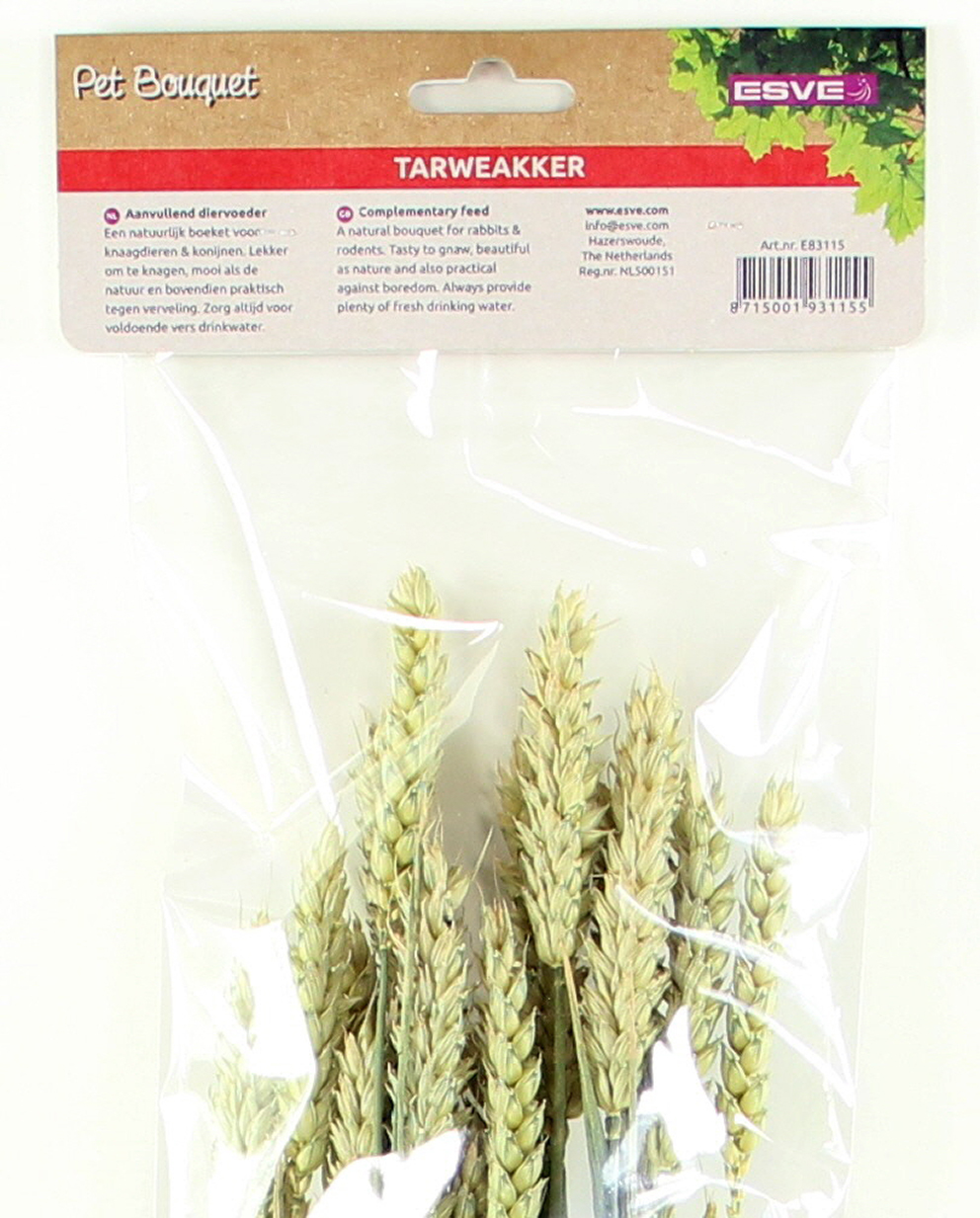 Een ESVE Pet Bouquet is de meest natuurlijke snack die u uw knaagdieren en konijnen kunt geven. De mooie bos versgeplukte tarwe kunt u in het verblijf leggen of hangen. Het staat niet alleen mooi, maar het voorziet het dier in zijn natuurlijke knaagbehoefte en gaat bovendien verveling tegen.