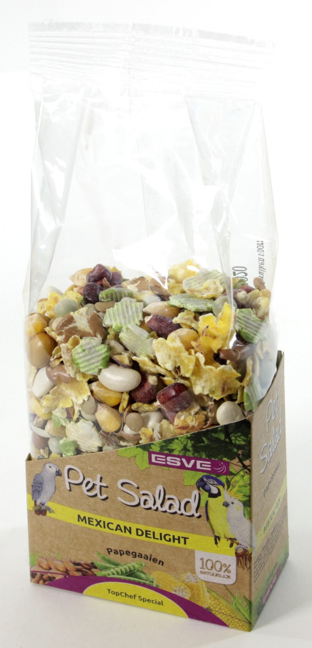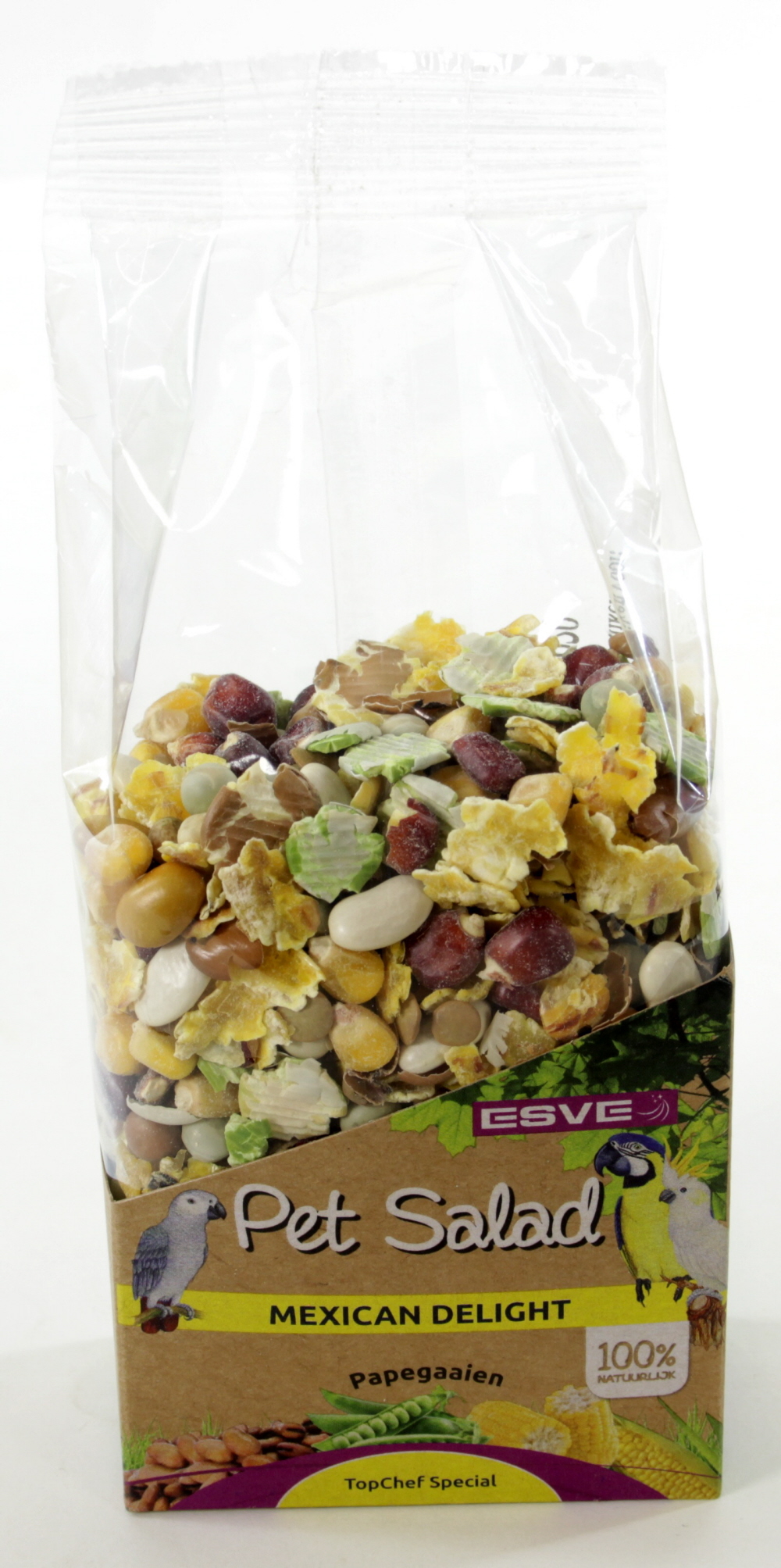 ESVE Pet Salad is een uitgekiend recept van bonen, erwten en mais. Papegaaien vinden het heerlijk en bovendien zijn deze hoogwaardige ingrediënten erg gezond.