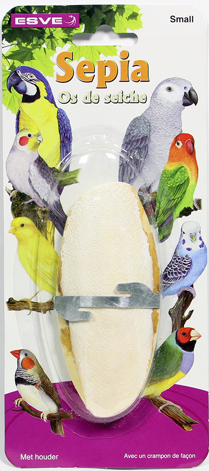 ESVE sepia is 100% natuurlijk en voorziet uw vogel(s) van onmisbare calcium en mineralen. Het is goed voor de bloedsomloop, het skelet en de eierschalen. Sepia heeft ook een “slijpfunctie“ waardoor snavel van de vogel scherp blijft. Wordt geleverd met houder om deze gemakkelijk aan binnenzijde van de kooi te bevestigen.