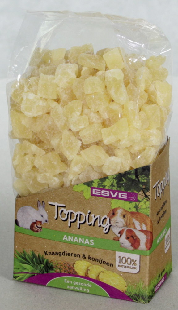 Ananas is een lekkere traktatie voor uw knaagdier. Ananas bevat onder andere vitamine C, zink, foliumzuur, bètacaroteen, kalium en mangaan.