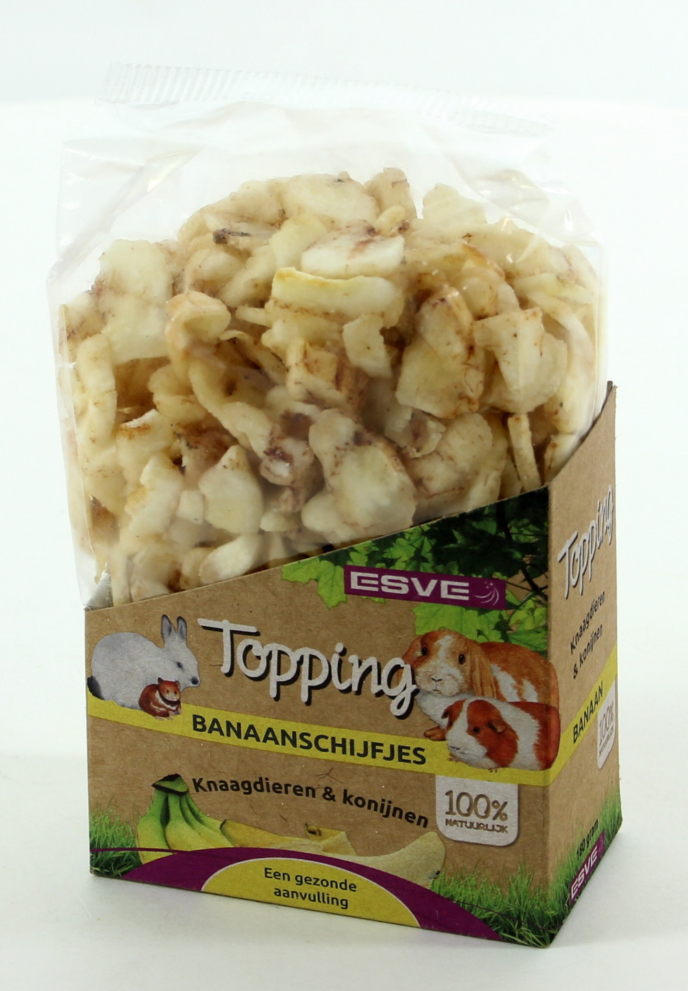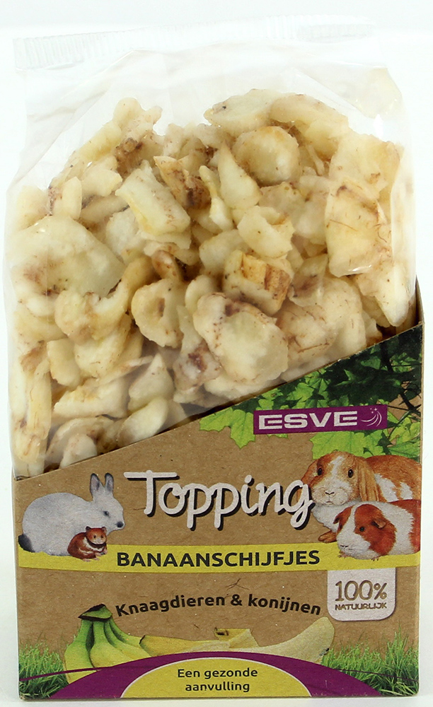 ESVE Bananenschijfjes is een lekkere, knapperige en gezonde traktatie voor uw huisdier. Bovendien bevatten ze belangrijke voedingsstoffen.