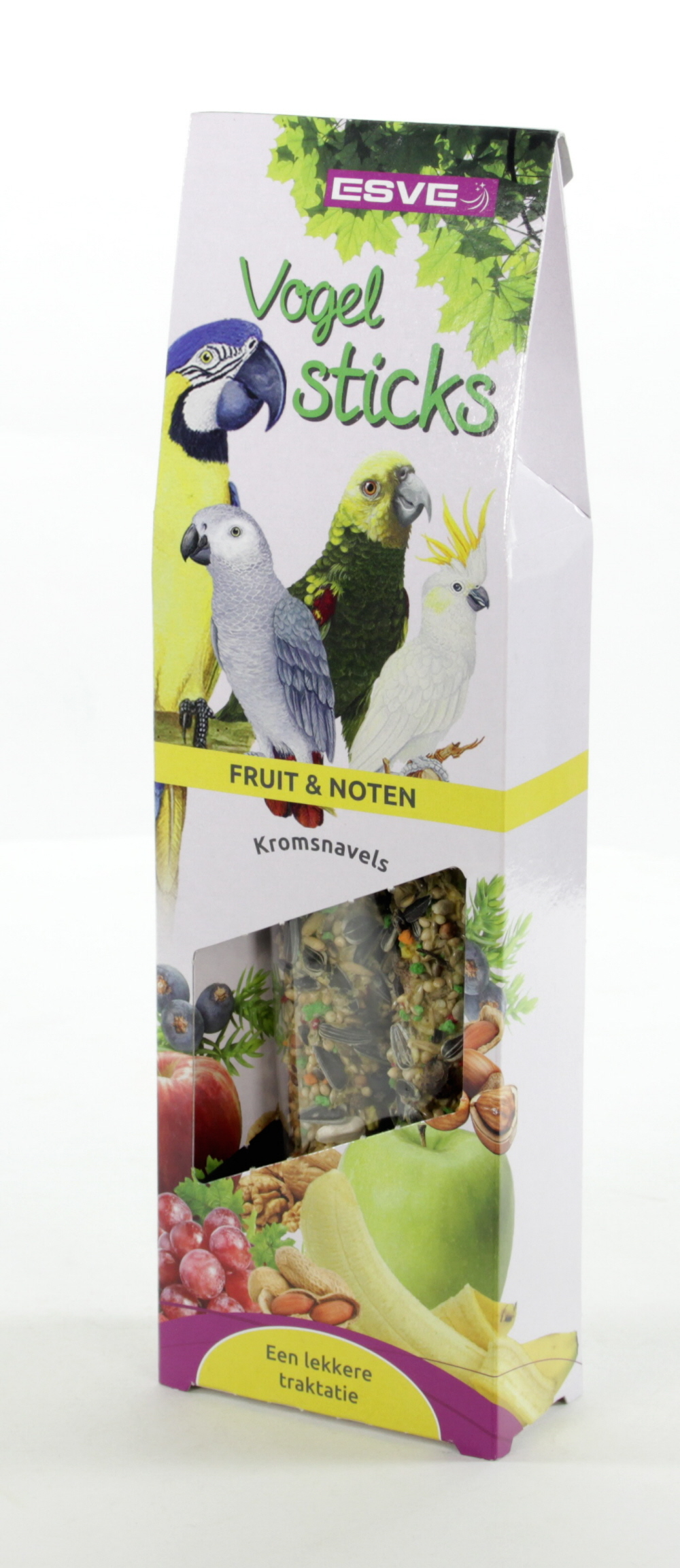 ESVE sticks zijn smaakvolle voedings- en traktatie stangen, boordevol belangrijke voedingsstoffen, geheel afgestemd op de behoefte van uw vogel(s). Bij de samenstelling is o.a. gebruik gemaakt van de zaden en grondstoffen die de vogel ook in de vrije natuur tot zich neemt, aangevuld met de noodzakelijke vitamines, die de weerstand verhogen en bijdragen aan een gezonde vogel met een mooie vederpracht.