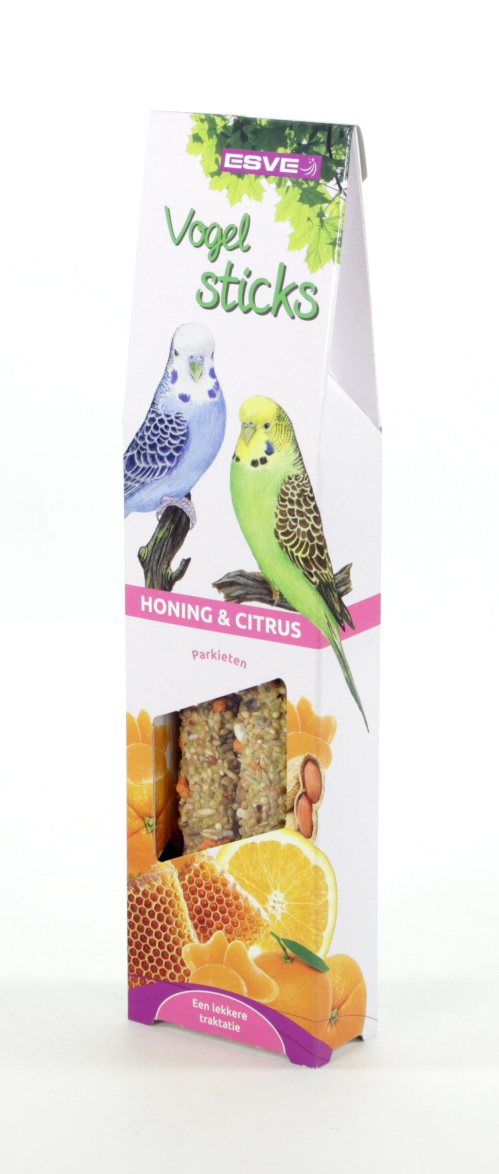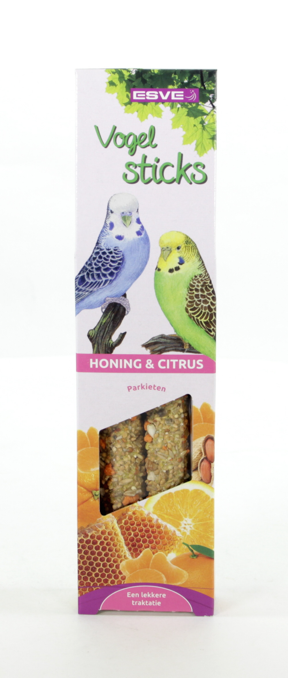 ESVE sticks zijn smaakvolle voedings- en traktatie stangen, boordevol belangrijke voedingsstoffen, geheel afgestemd op de behoefte van uw vogel(s). Bij de samenstelling is o.a. gebruik gemaakt van de zaden en grondstoffen die de vogel ook in de vrije natuur tot zich neemt, aangevuld met de noodzakelijke vitamines, die de weerstand verhogen en bijdragen aan een gezonde vogel met een mooie vederpracht.